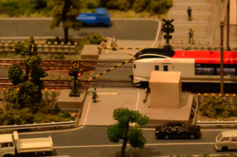 踏切が接近にあわせて閉じて離れると鳴動やめます