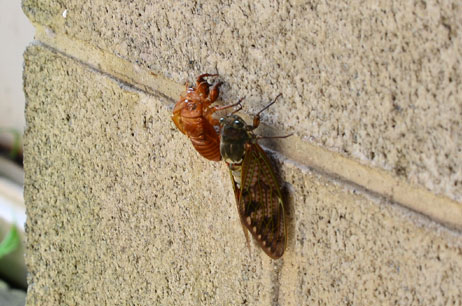 出掛けにセミが羽乾かしてました。 帰ってきたときにもいたけどな!