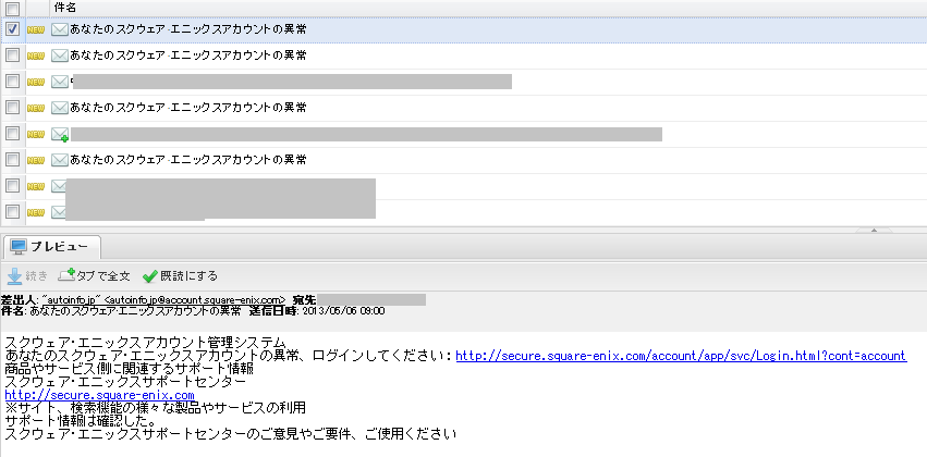############################### 差出人: "autoinfo_jp" <autoinfo_jp@account.square-enix.com> 件名: あなたのスクウェア・エニックスアカウントの異常 送信日時: 2013/05/06 09:00